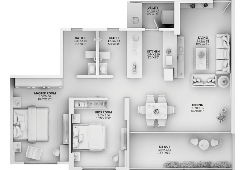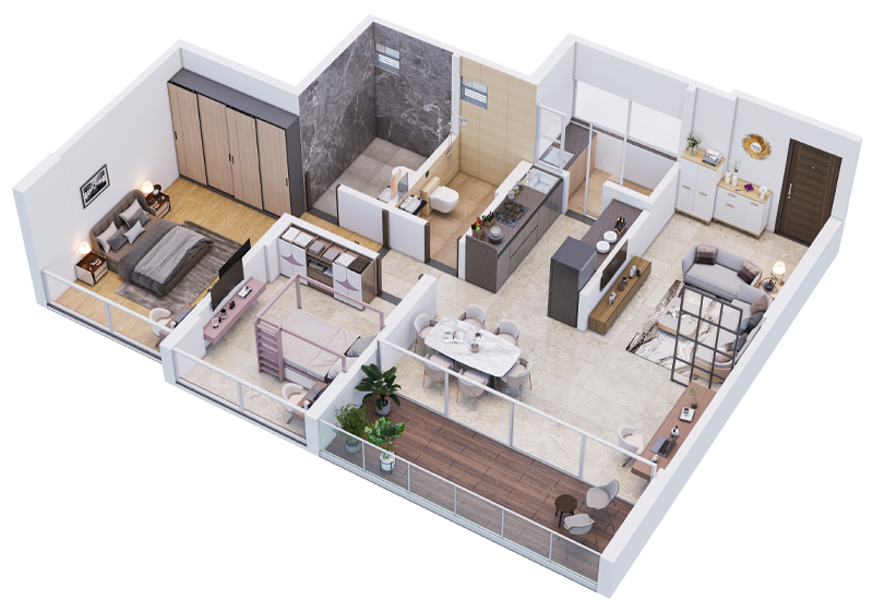 Designed by Space Syndicate, Ganga Arcadia brings you limited edition spacious apartments for those with eclectic thoughts and discerning tastes. Our 2, 3, and 4 bedroom apartments are not only spacious but also provide an expansive wings to your vision. While the wide windows give a panoramic view of the Kharadi skyline, the decks allow you space for a quick private celebration. These are the coves one would love to come back to, every time.